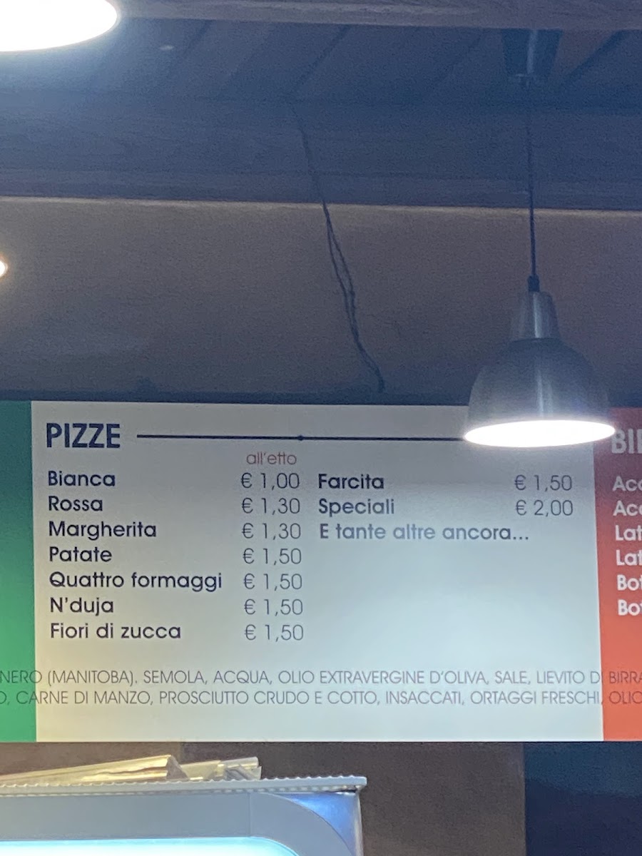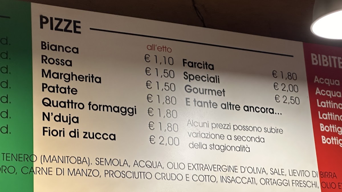 Welcome to La Pecora Pazza, a hidden gem tucked away on Via della Mercede in Rome, known for its delectable pizza al taglio. The menu features an impressive array of **Pizze Rosse**, including the classic Napoli Pomodoro with anchovies and mozzarella, all crafted with fresh ingredients.
